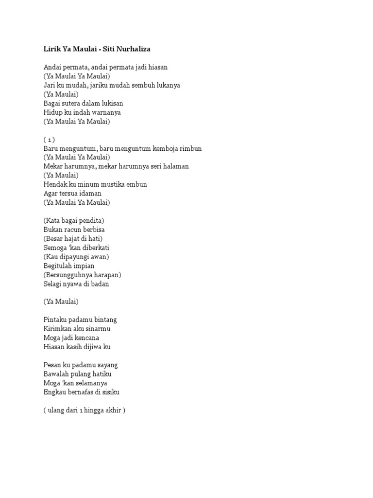 Ya Maulai Lyrics By Siti Nurhaliza Andai Permata Andai Permata